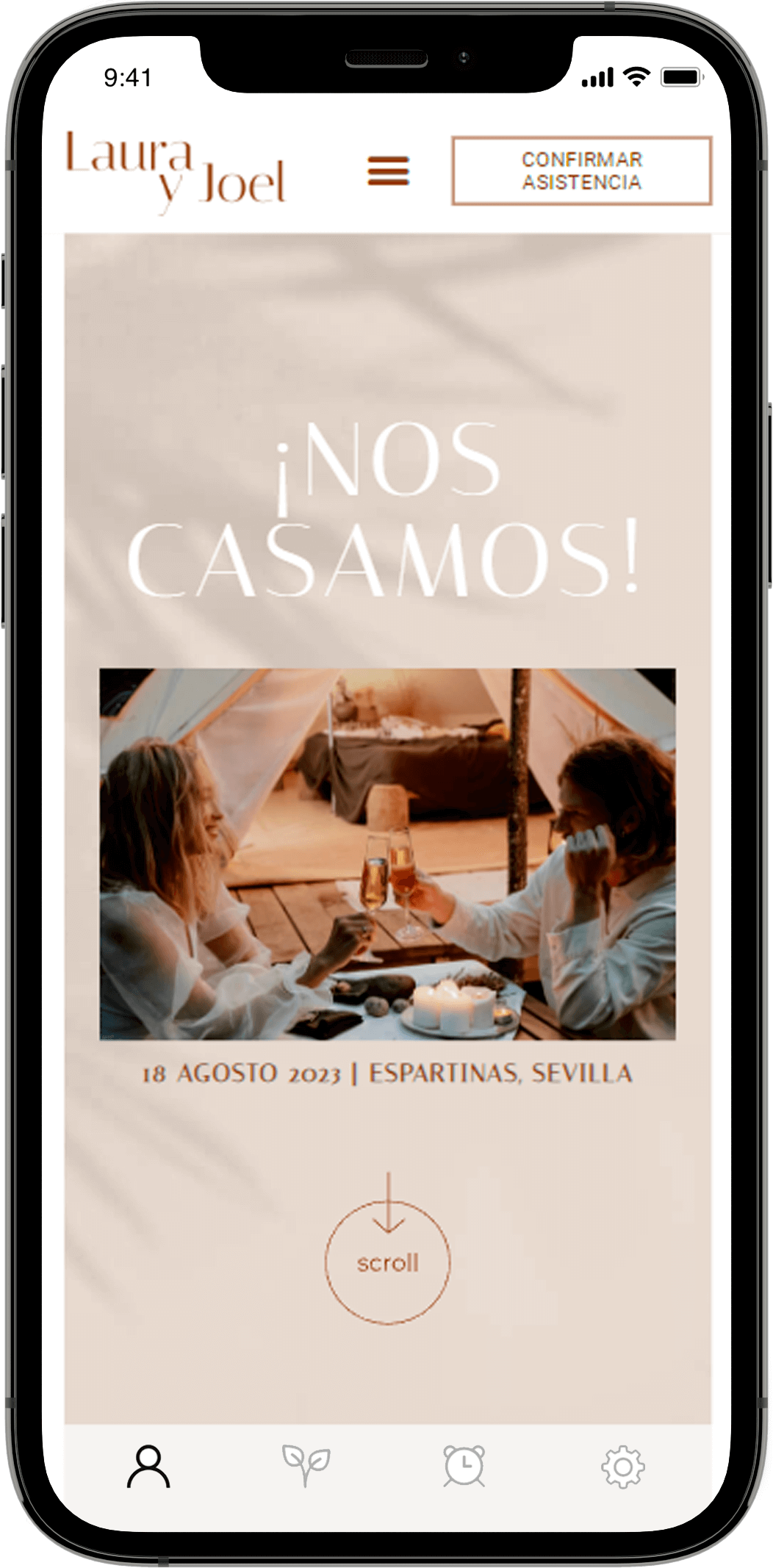 Aquí anunciaremos los detalles más importantes y relevantes a tener en cuenta para el día de la boda (lugar, hora, nombres principales..) y podréis añadir también todos los datos informativos si vais a tener una preboda.